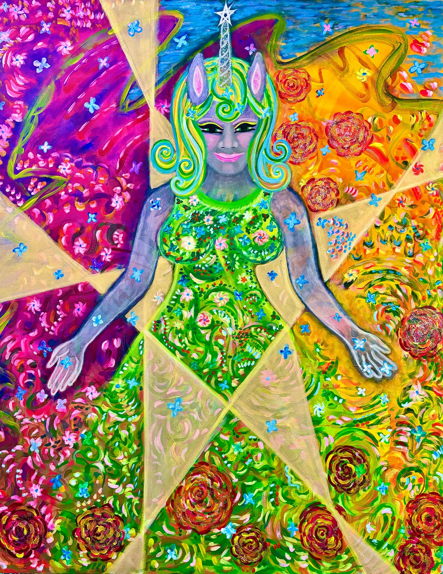 I claim myself and name myself, Stardust Unicorn, and I am here to be Stillness and Light and embody Love, Sanctuary, Grace, the Spirit of Play, and Reassurance that Everything will be Okay. Everything is Okay. Everything is in Balance. I am Stardust formed from Formless, and I bring my gifts as offerings at the Altar of Beingness.